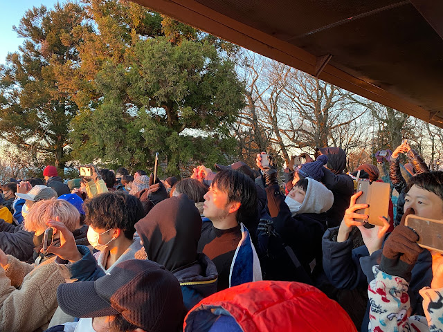 Yesterday was a great day to welcome the first sunrise of the year and Mt. Oyama is a swell place to do this. No wonder it's popular for the first sunrise. If you go for sunrise on January 1 though, be early. I was really surprised at how all of the parking lots were already full when I got there around 4:30. It took me 15 minutes to find a parking lot with a space for me. I was able to park only because I was on a bike. I don't think there was any car parking left. Indeed, there were cars waiting in the street for people to leave the parking lots all day to open up spaces.