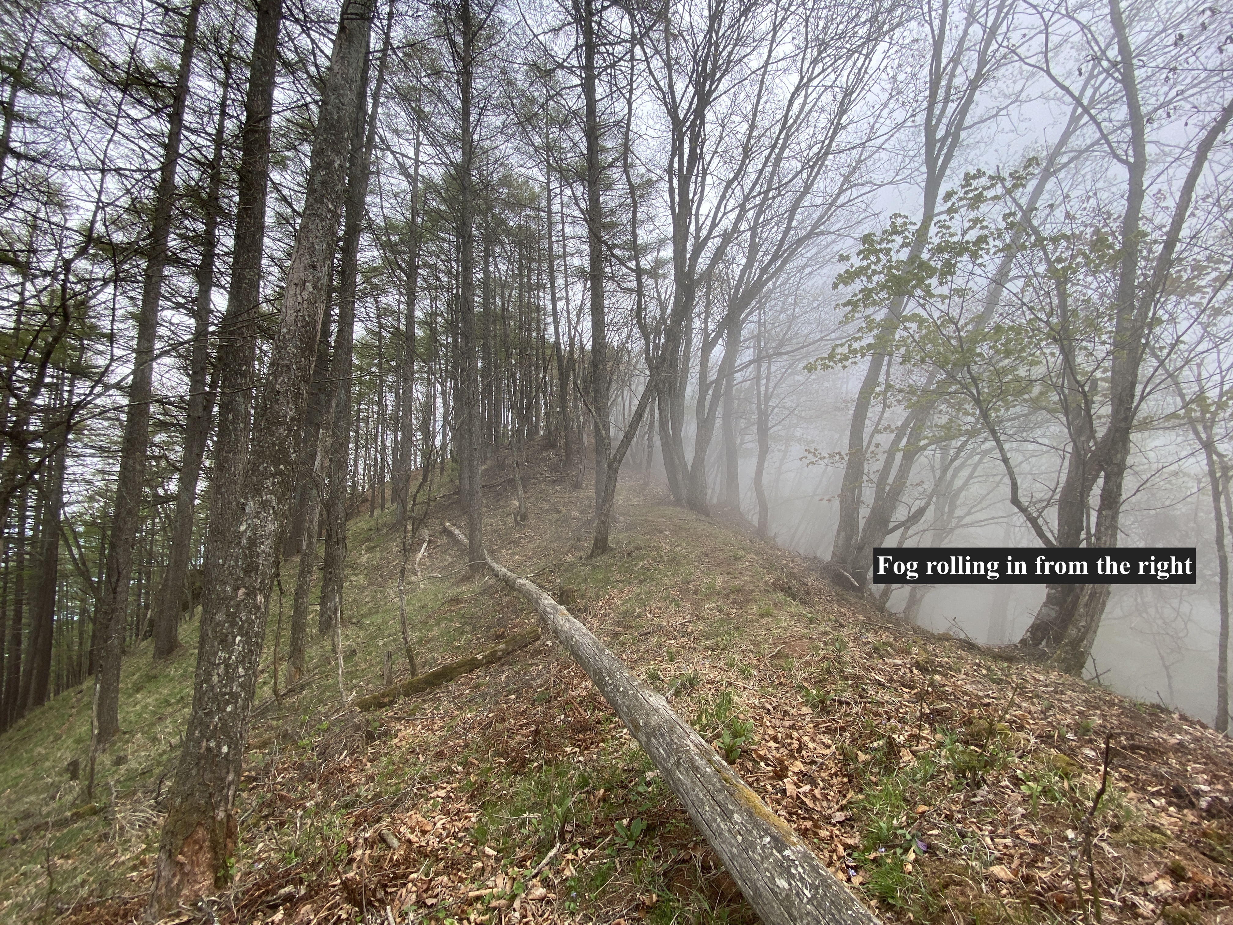 Technical considerations/difficulty: The hike up to the first peak is steep but fairly straightforward. It's very well-marked up to there. There are no chains or ladders. From Mt. Morai to Mt. Yomopara also has no chains or ladders but, as the trail is less-frequented, is hard to follow in many places. It's covered in leaves and there are no signs in some areas. I relied on my GPS at more than one point. Also, this portion of the trail is often on the narrow ridge top. It's quite steep on both sides. This hike is all below the treeline. Because of the nature of the trail, progress was slow.
