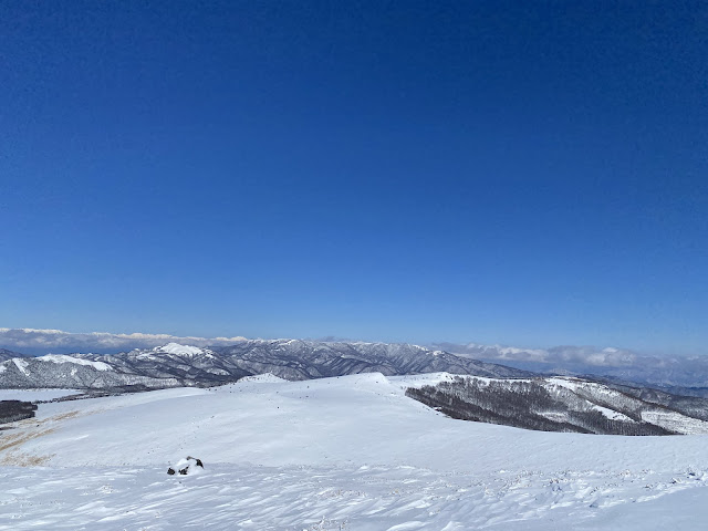If you ever get the chance, hike around here. It's really nice and not that taxing. This was my second time to climb Kuruma. The first time was in August two years ago. That day I hiked up from Lake Shirakaba to the east. That was a 19 km trek. It was so enjoyable, it felt like a walk in the park. I made a mental note on that day that I would like to go snowshoeing there sometime. Yesterday, I got my chance. This time I started nearer the peak at the Kurumayamakata Parking Lot. From that spot on the Venus Line Road, it is not that long a walk to the top and not that much of a change in elevation. I extended my hike to the marshes in the east, though. This made for a 9.7 km trek and enabled me to connect the dots with a hike I made to Washimine a month or two ago.